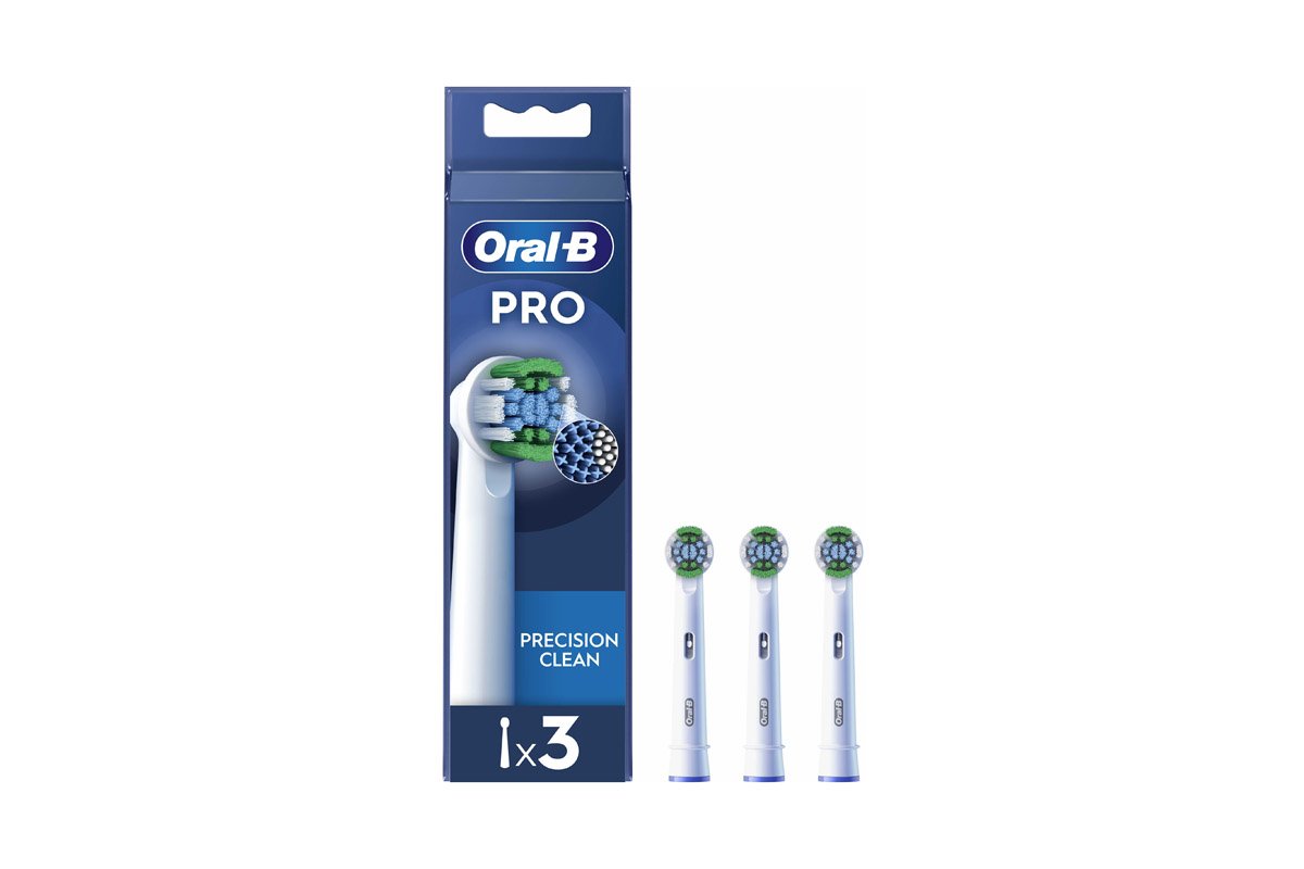 Les filaments de la brossette Oral-B Pro Precision Clean éliminent la plaque dentaire pour un meilleur nettoyage dent par dent qu’avec une brosse à dents manuelle classique.