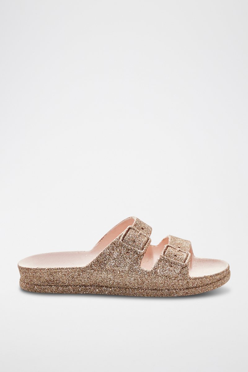 Mules pailletées.