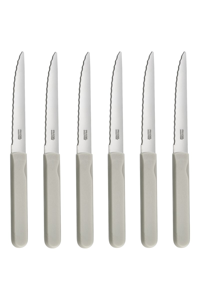 6 couteaux à steak en acier inoxydable.