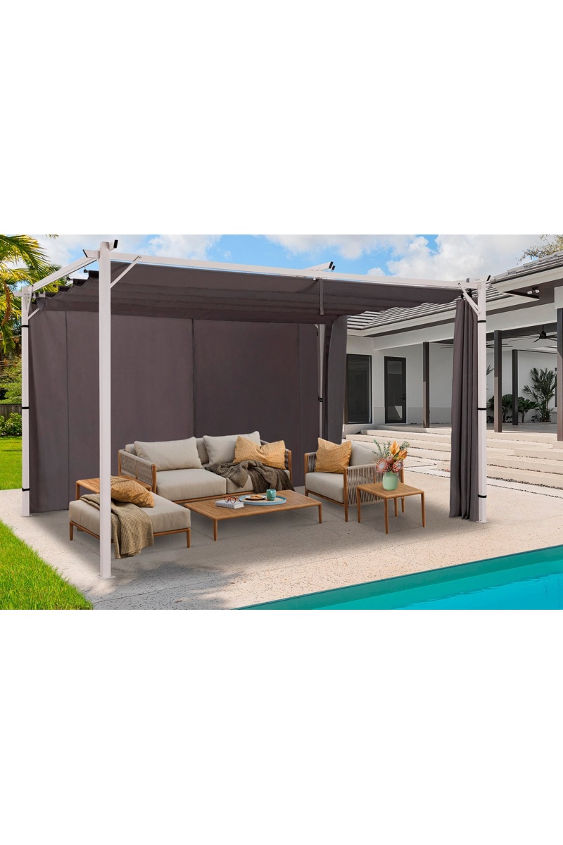 Rideau universel avec tringle se fixe facilement sur les montants de votre pergola.