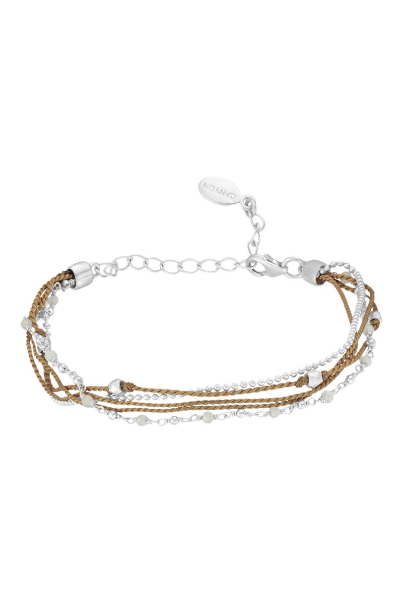 Bracelet multirangs en argent serti de mini pierre de lune facettées.