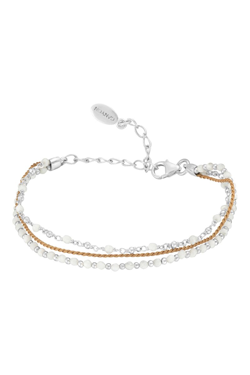 Bracelet multi-rangs en argent serti de pierres de lune.