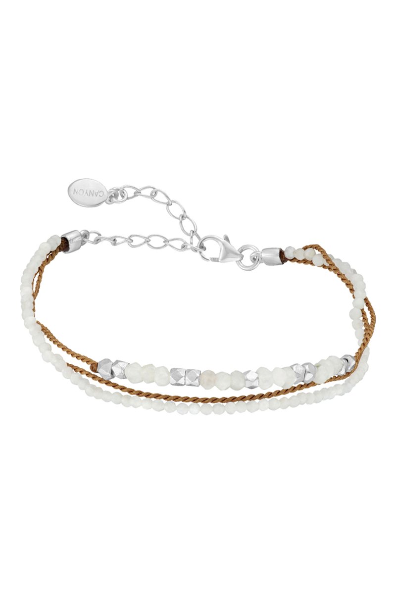 Bracelet multi-rangs en argent serti de pierres de lune.