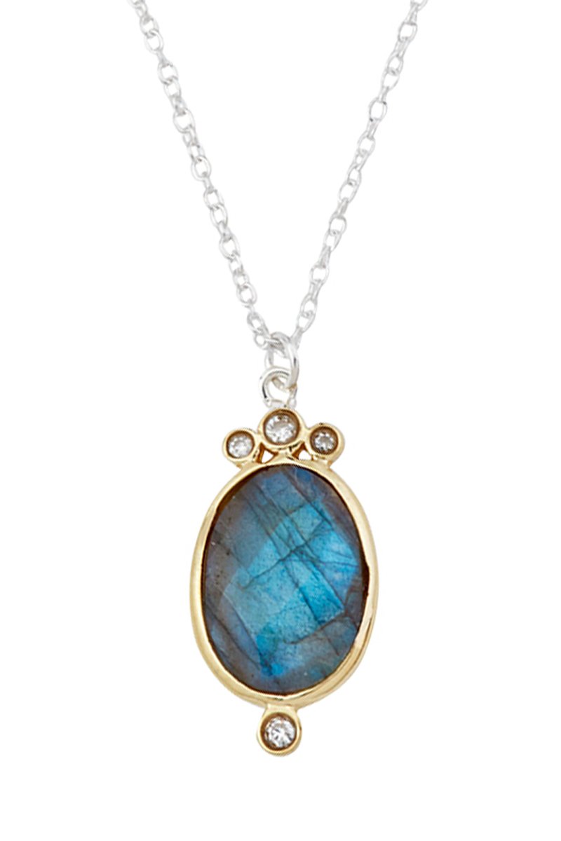 Pendentif serti de 4 oxydes de zirconium et d’une labradorite.