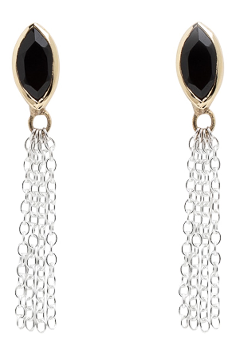Boucle d’oreilles pendantes en argent serties d’un onyx.
