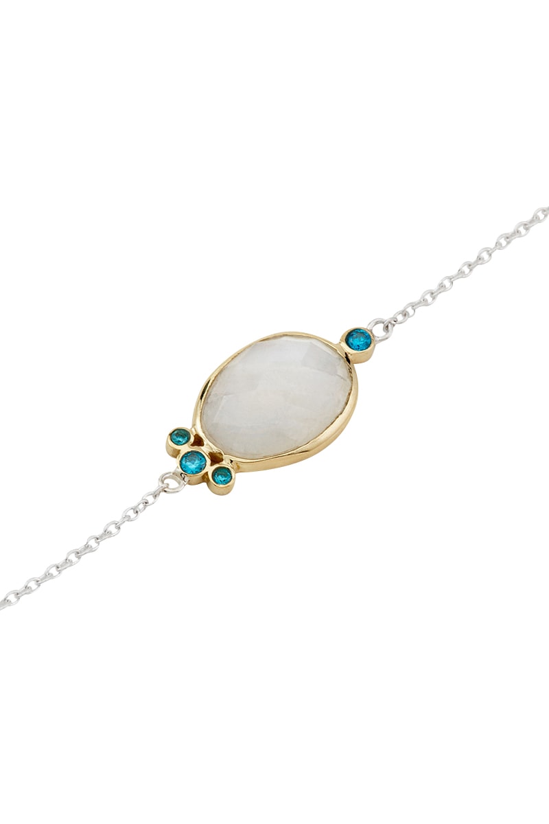 Bracelet en argent serti d’une pierre de lune et d’oxydes de zirconium.