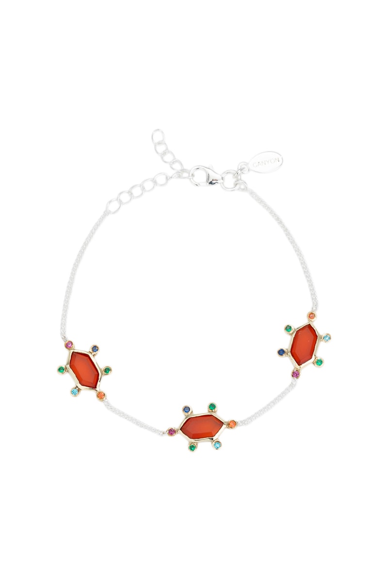 Bracelet en argent serti de 3 cornalines et d’oxydes de zirconium.
