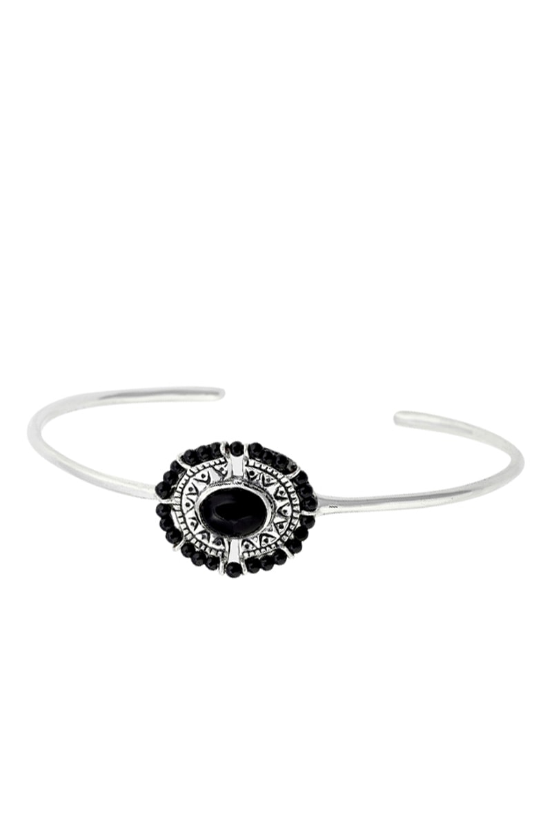 Jonc ouvert en argent serti d’onyx.