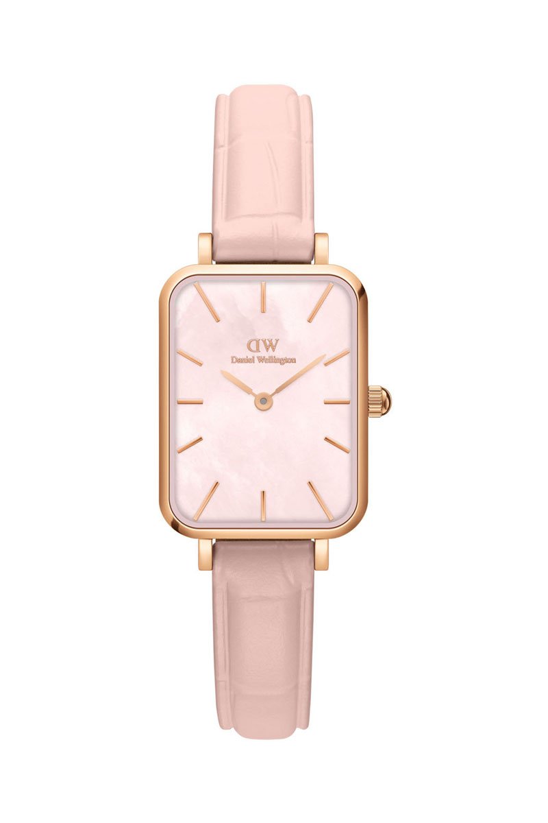Montre à quartz en cuir et nacre Quadro Pressed - 20 x 26 mm - Doré rose