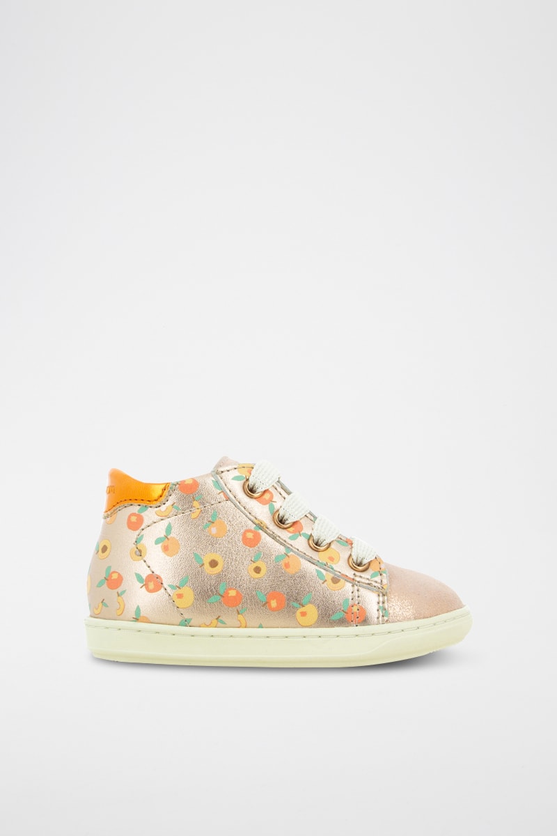 Fermeture à lacets devant, zippée et par scratch sur le côté.
