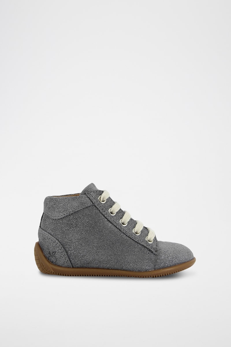Bottines en cuir pailleté.