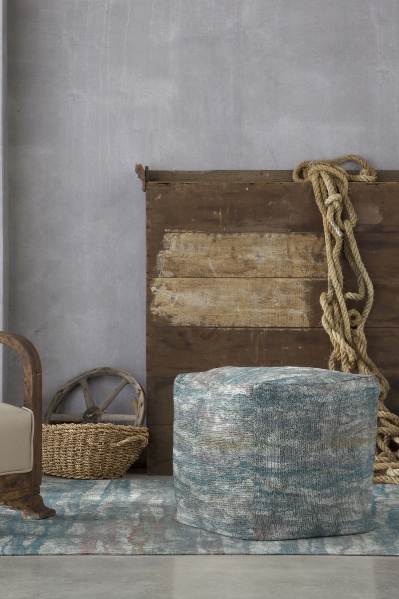Pouf - Bleu canard et gris - Toucher velours