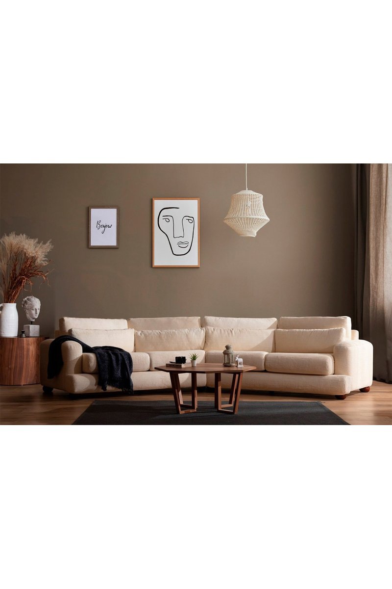 Canapé en hêtre River - Beige - 4 places - Revêtement polyester