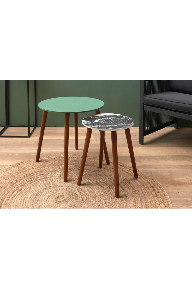 2 tables basses gigogne Black Forest - Vert, blanc et noir