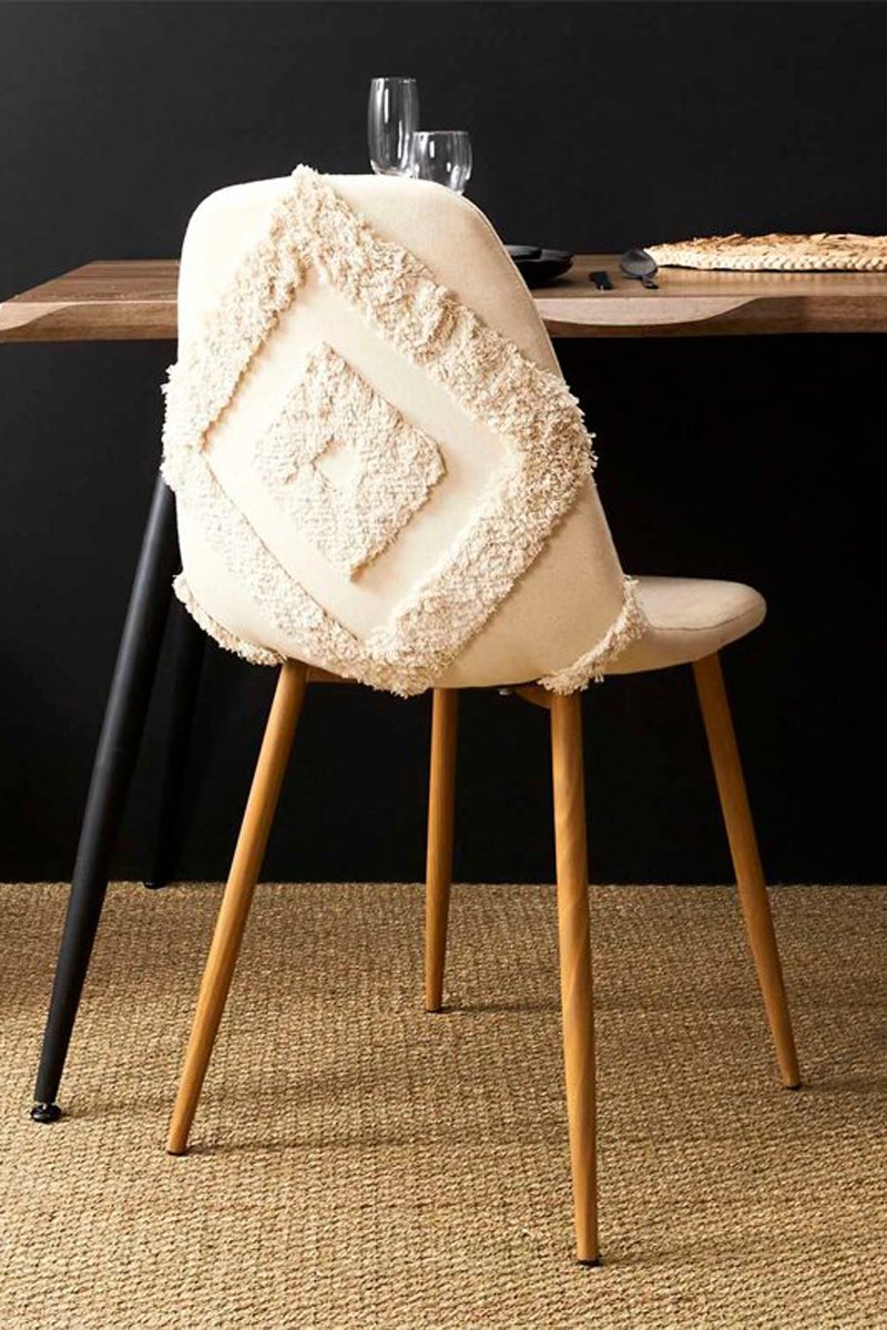 Motifs géométriques au dos du dossier.