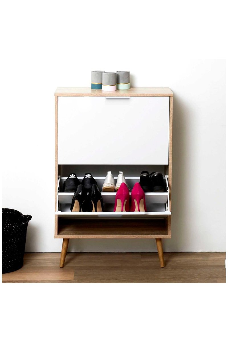 Meuble à chaussures 2 abattants en bois - 60 x 92 x 24 cm - Naturel et blanc