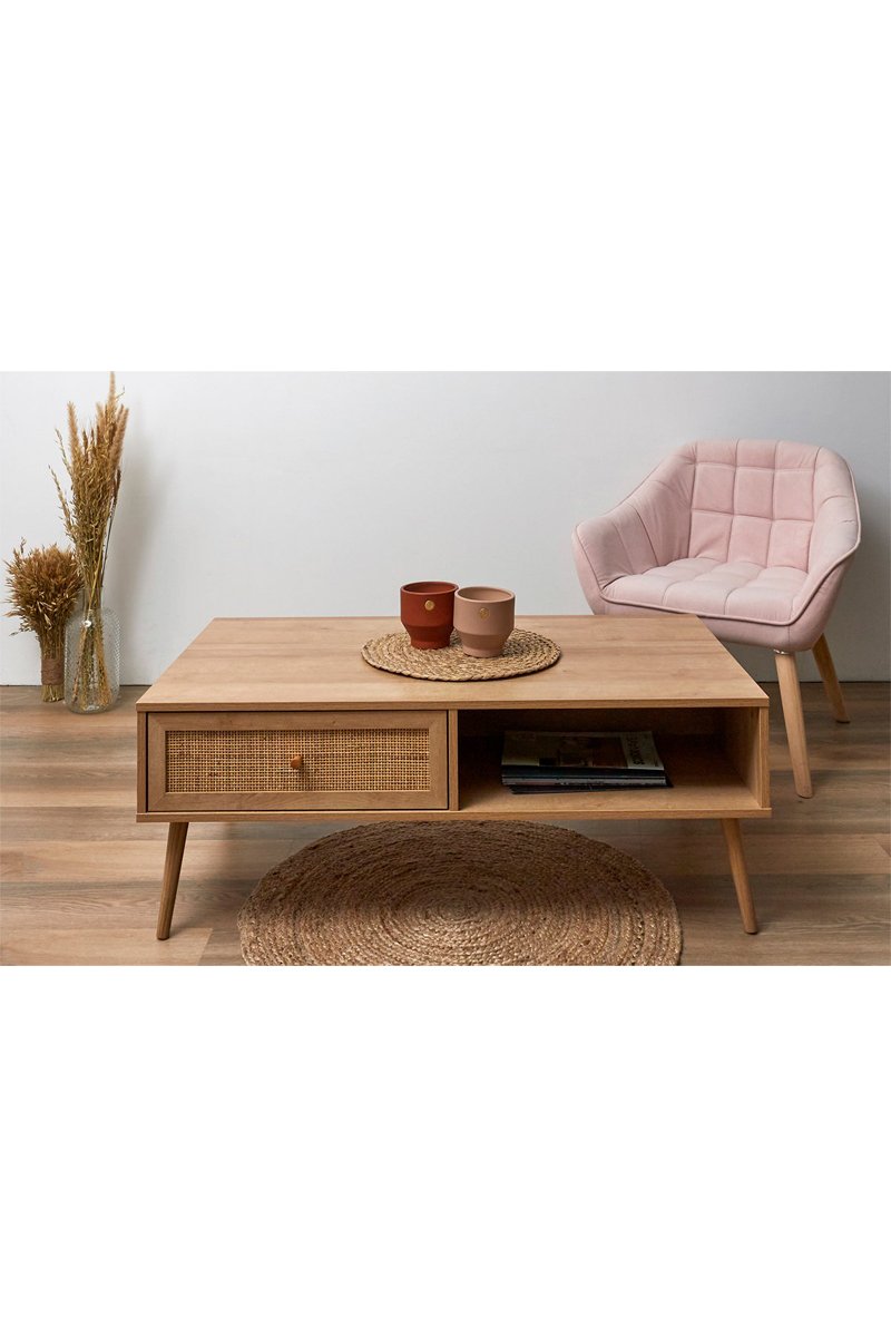 Table basse en bois.