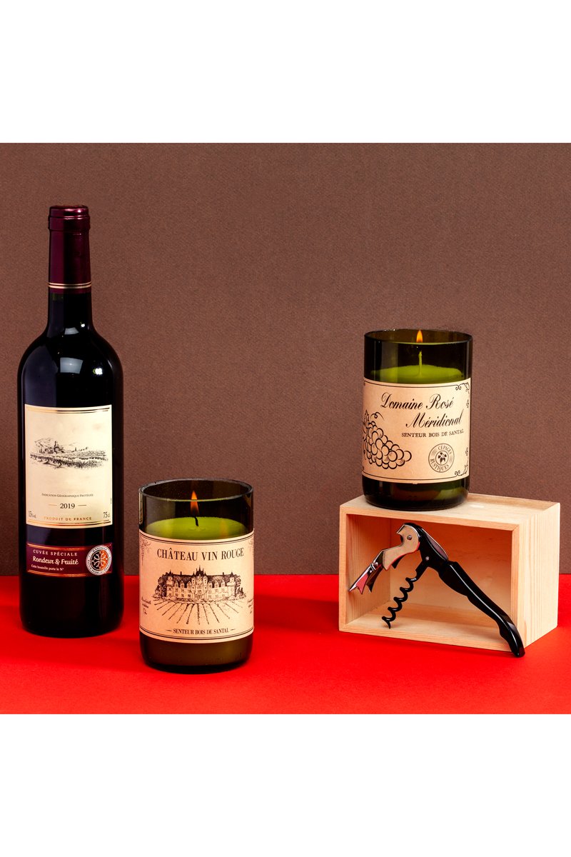 Bougie parfumée avec leur coffret en bois.