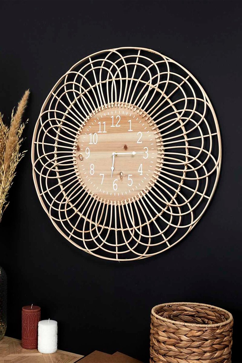Horloge en rotin et bois - 70 cm
