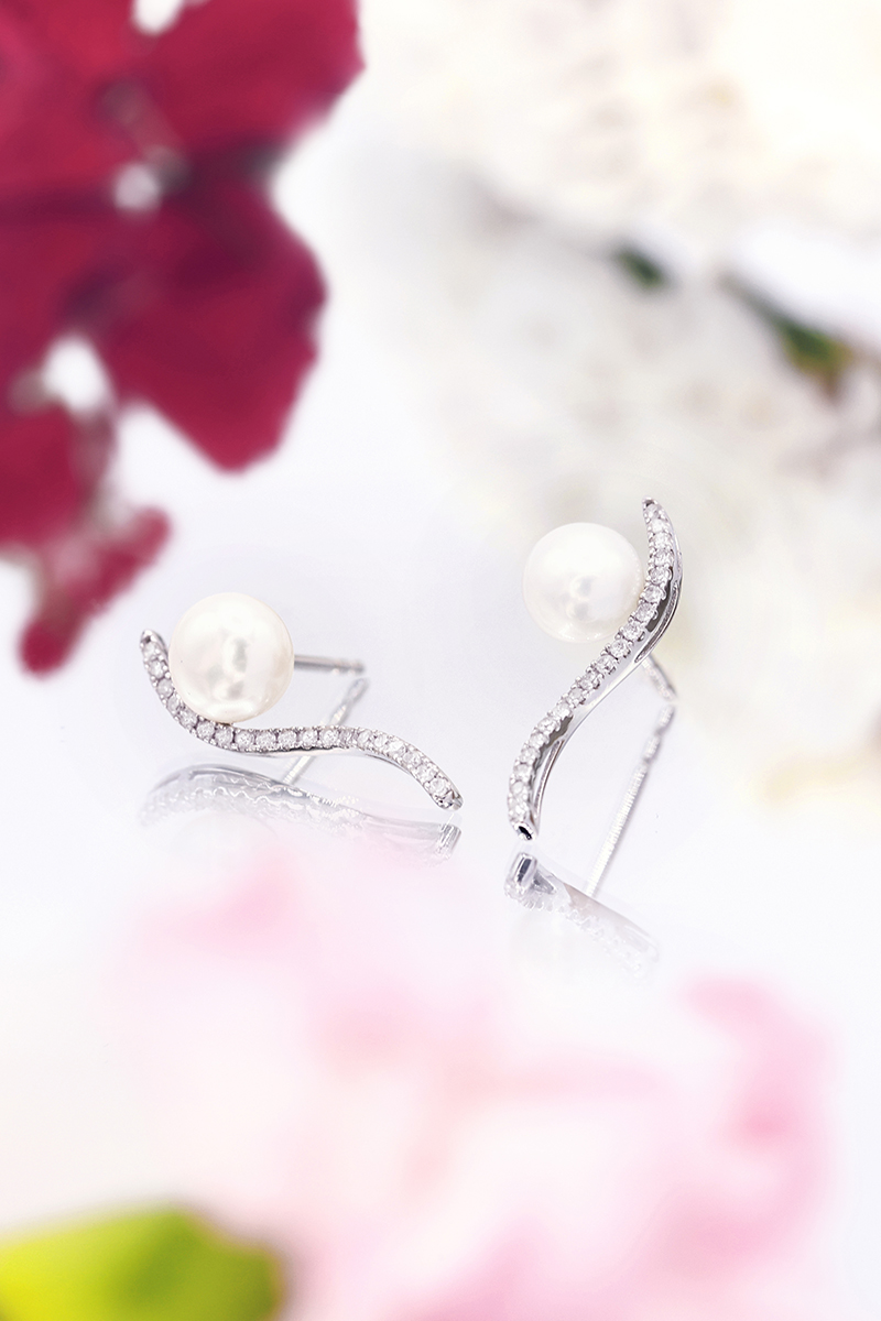 Boucles d'Oreilles Vague Sublime - Or blanc, diamants et perles de culture
