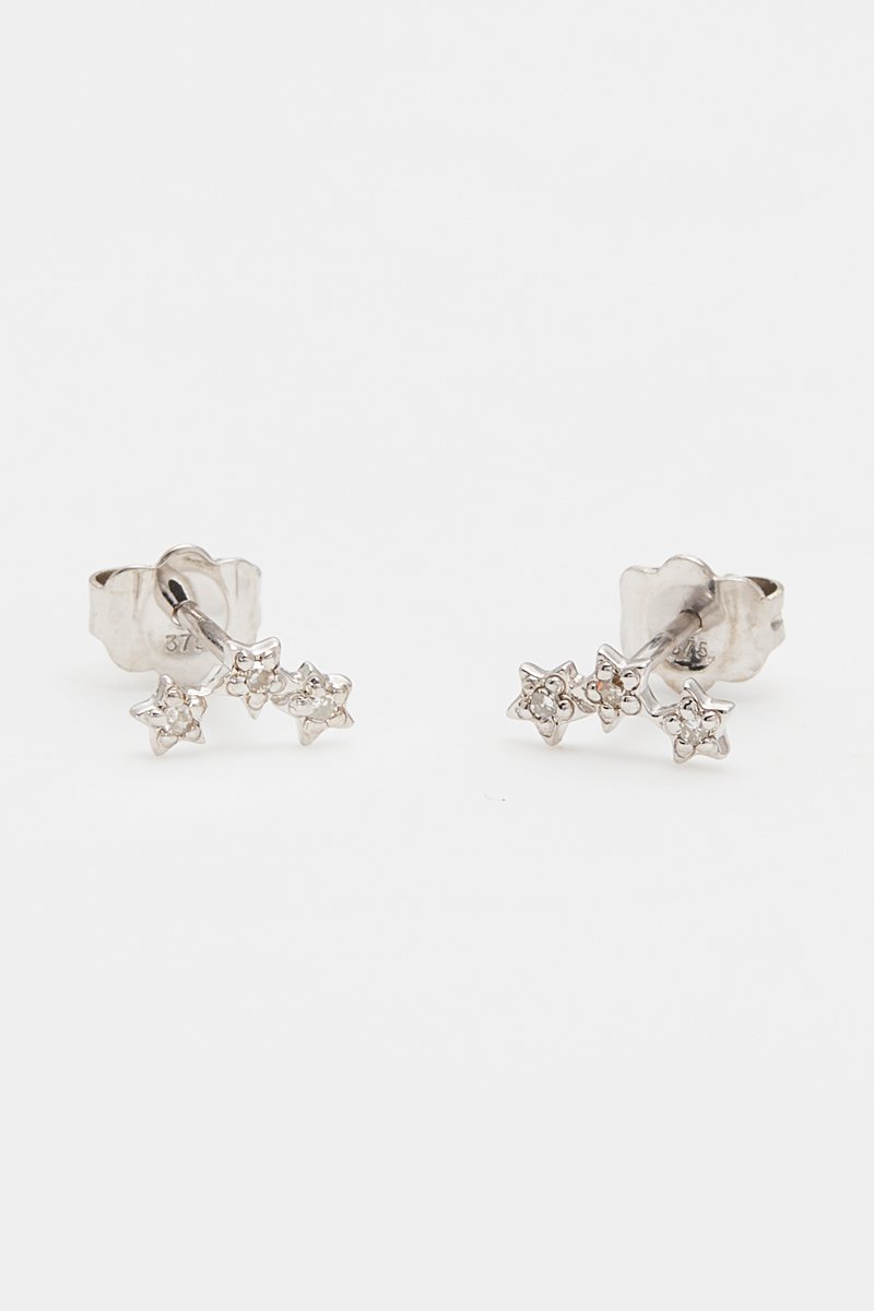 Puces en or blanc serties de 3diamants.