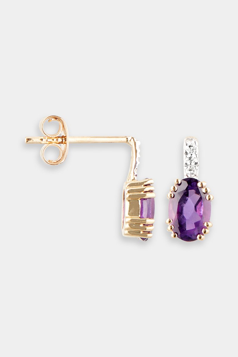 Matière : or jaune 375/1000, diamants 0,03 carat/6 et améthystes 1,05 carat/2