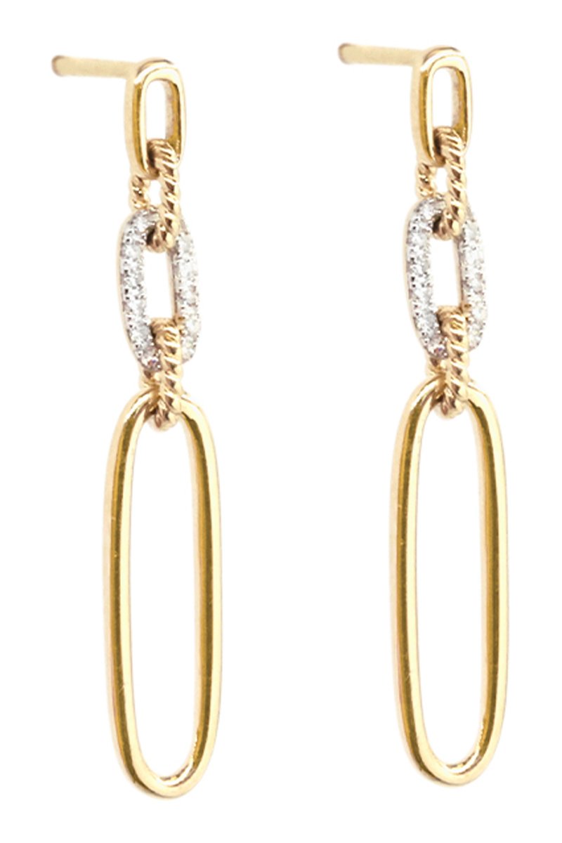 Boucles d’oreilles pendantes en or jaune serties de 12 diamants.