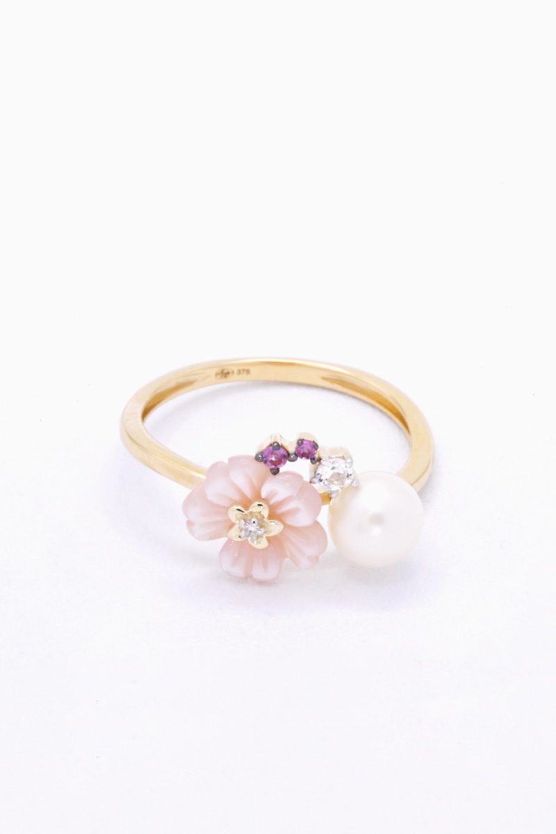 Bague Meira - Or jaune, diamant, saphirs et nacre