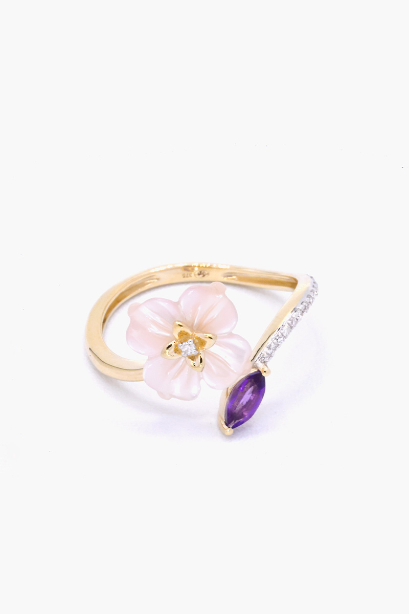 Bague Prisca - Or jaune, diamants, améthyste et nacre