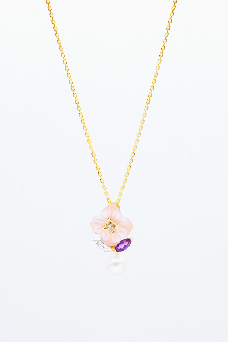 Pendentif Cheina - Or jaune, améthyste, nacre et péridot