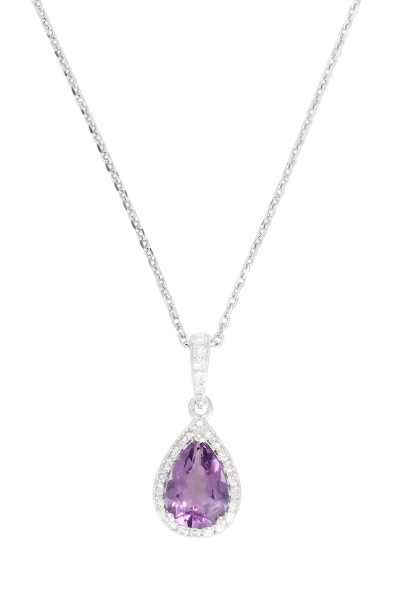 Pendentif en or blanc serti de 28 diamants et d’une améthyste.
