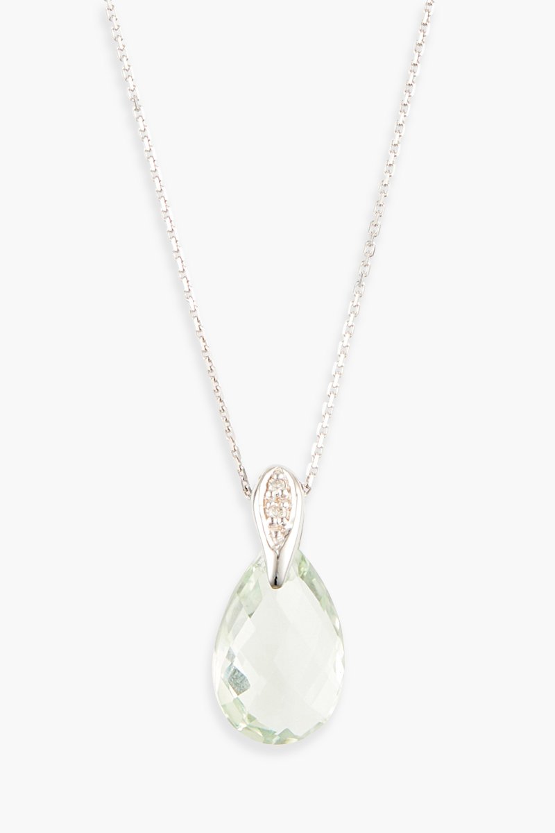 Pendentif en or blanc serti de 12 diamants et d’une améthyste.