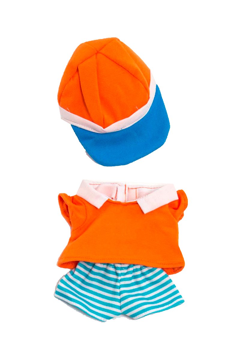 Contient un t-shirt, un short et une casquette.