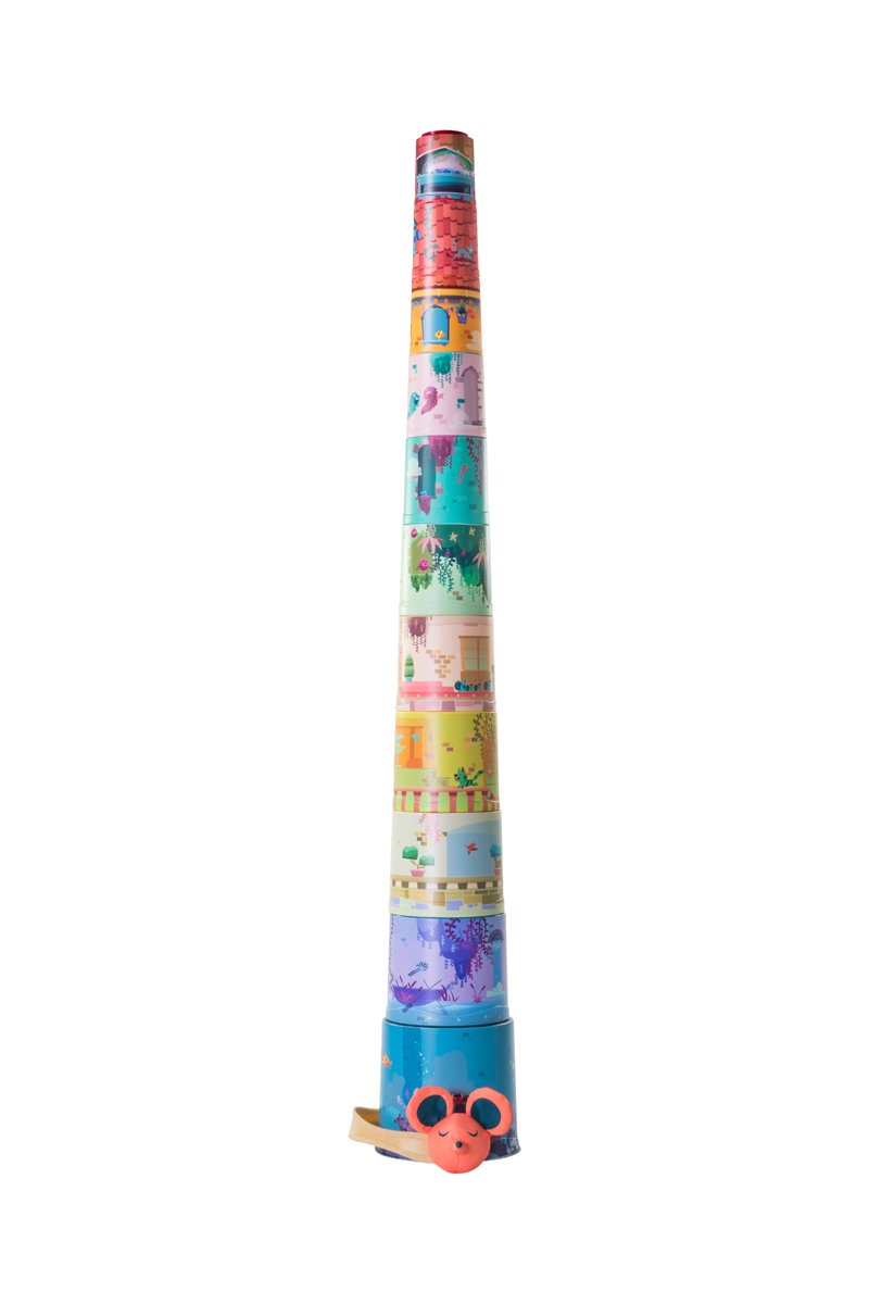 Les plus petits peuvent inventer autant d’histoires que leur imagination, cachant la petite souris entre les cubes ou la lançant pour abattre la tour.