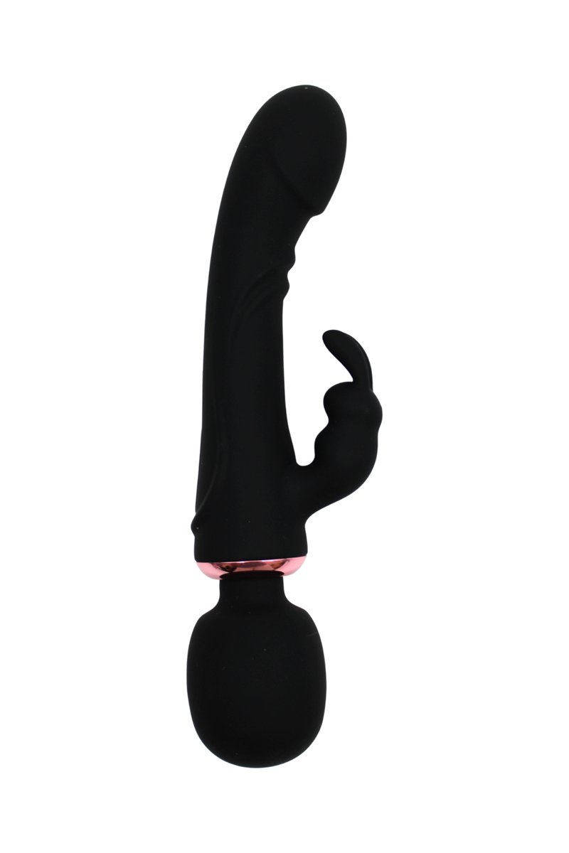 Vibromasseur 2-en-1 Rabbit & wand - Noir - 10 cm