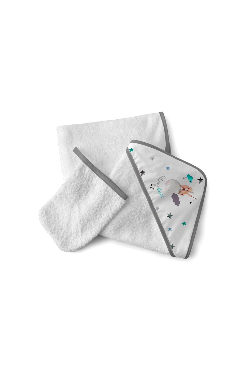 Sortie de bain et gant de toilette - Blanc et gris