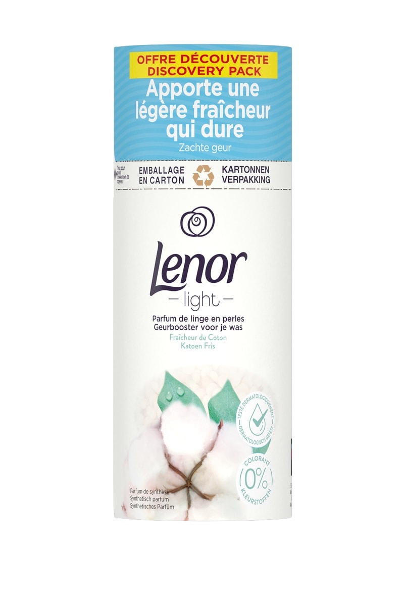 Essayez-le avec l’adoucissant léger Lenor Light Fraîcheur de Coton, s’associant en parfaite harmonie pour une fraîcheur irrésistible.