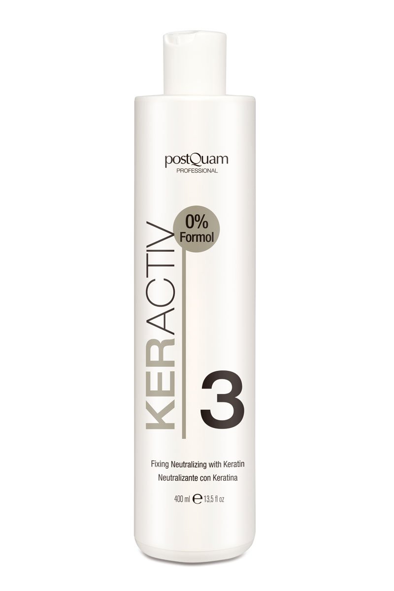 Emulsion neutralisante enrichie en kératine qui fixe la forme des cheveux soumis au lissage.
