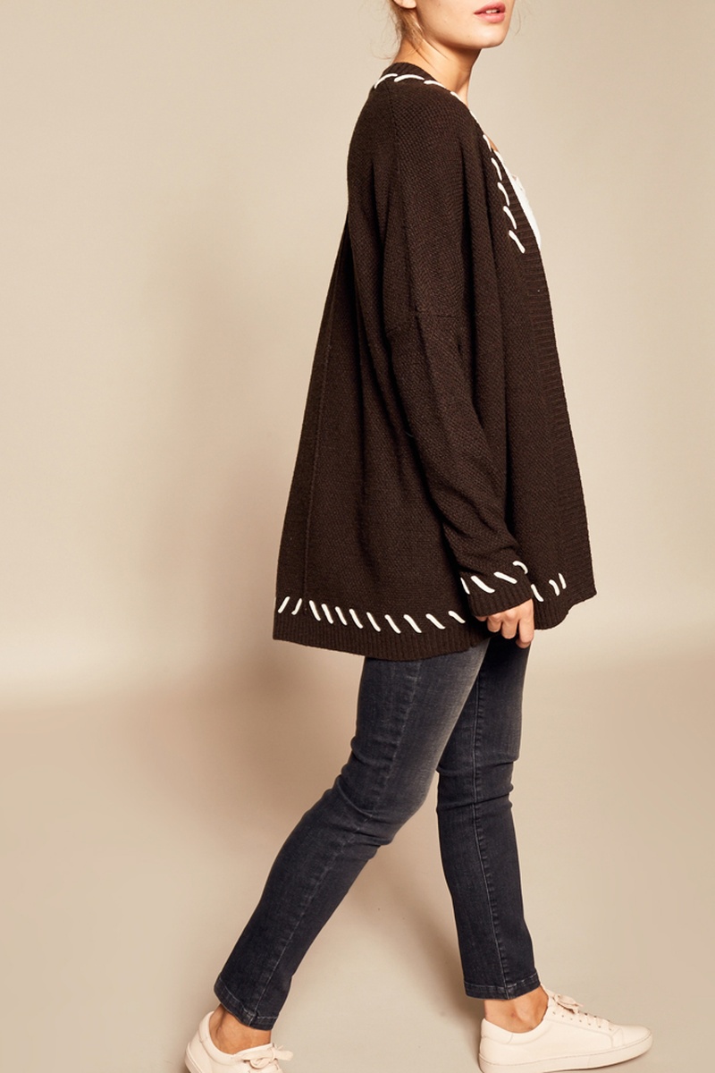 Empiècements contrastants aux poignets, sur le col et à la base.