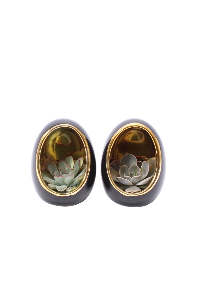 2 Echeveria en œuf décoratif noir et doré - Hauteur livrée 12 cm