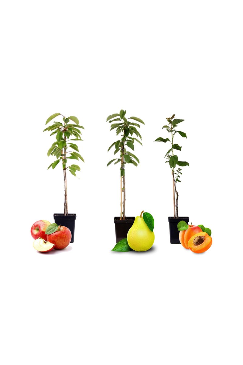 Assortiment poirier, pommier et abricotier - Hauteur livrée 60-70 cm