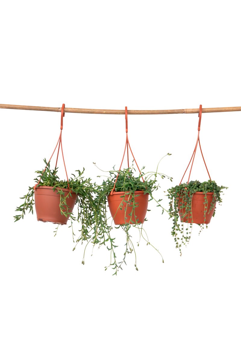 Le séduisant Senecio P12 Mix x3 est un bel ajout à votre espace intérieur, composé de trois plantes suspendues uniques : Senecio Rowleyanus (plus connu sous le nom de Collier de Perles), Senecio Dolphin et Senecio Bananas.