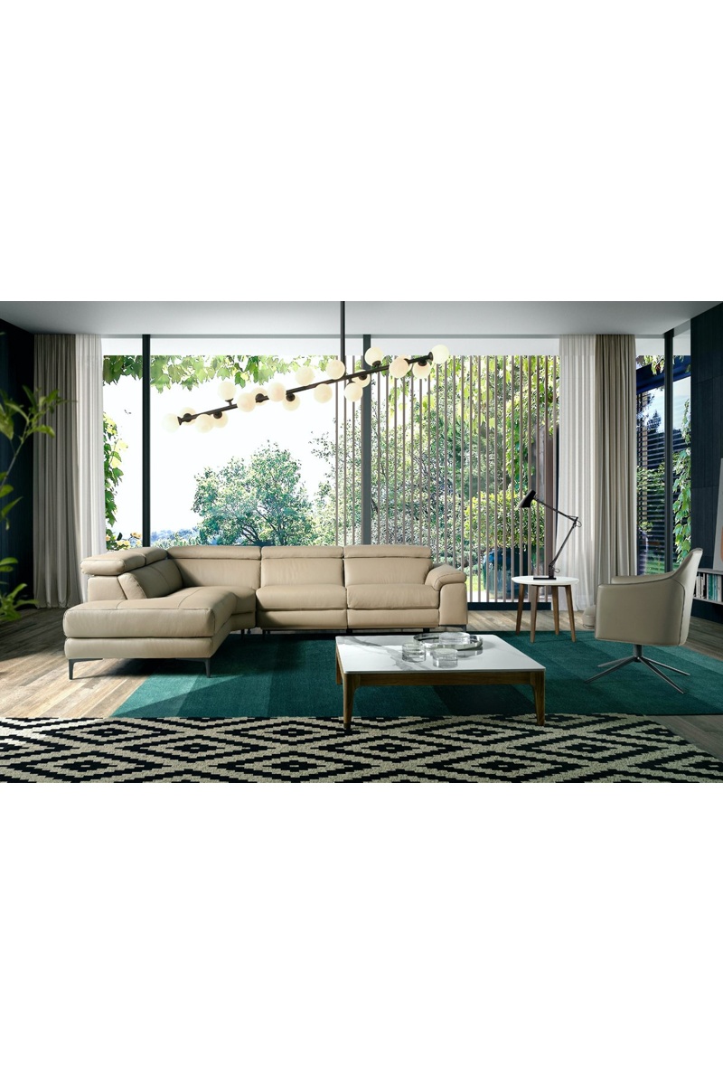 Canapé d’angle gauche en cuir à mécanisme électrique - Beige