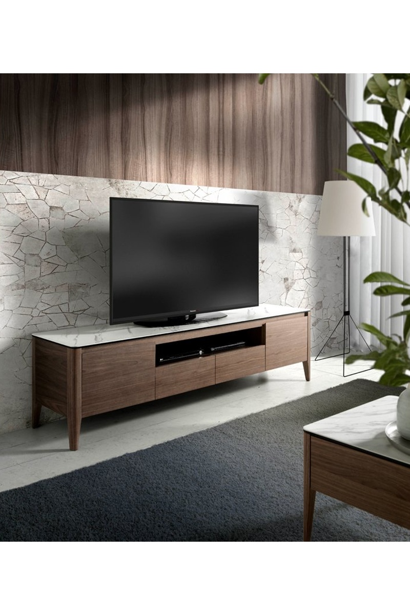 Meuble TV 2 portes - Naturel et blanc