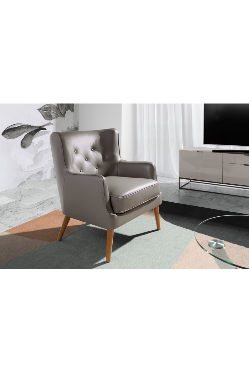 Assise, dossier et accoudoirs rembourrés en mousse de polyuréthane de 25 kg/m³.