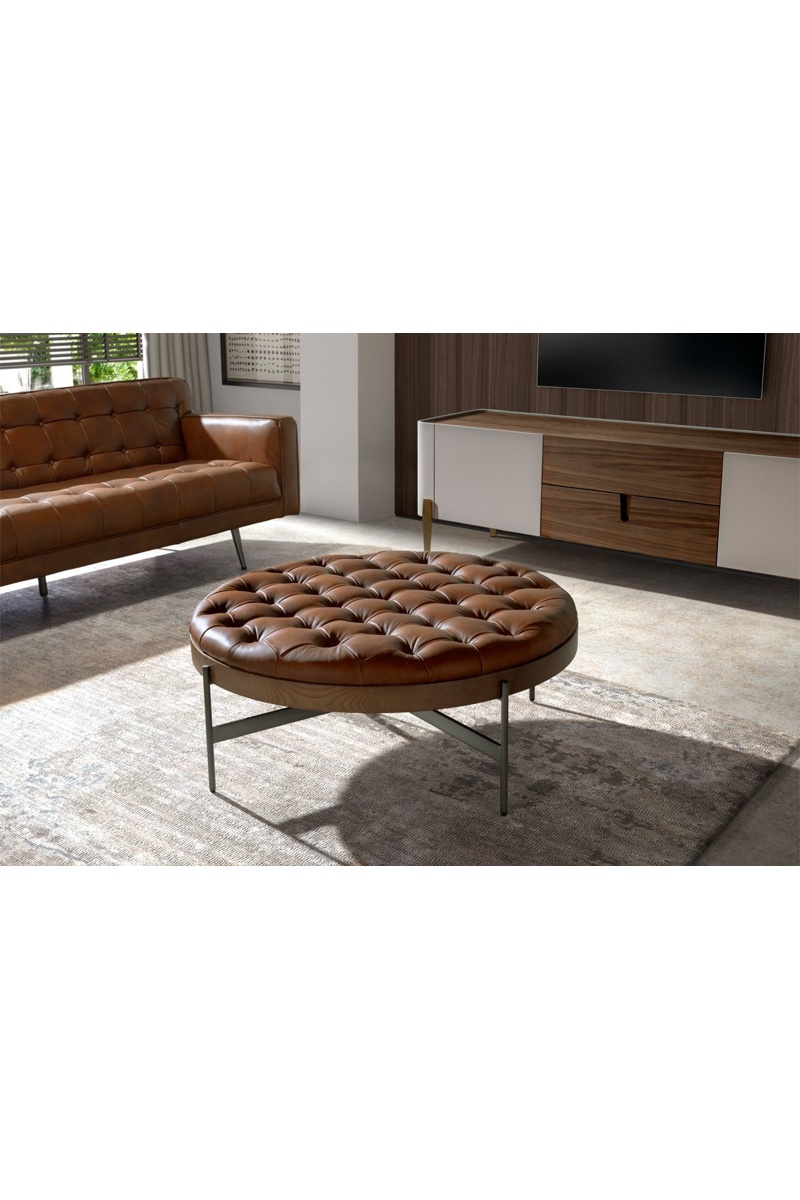 Table basse en bois et cuir - 100 x 40 x 100 cm
