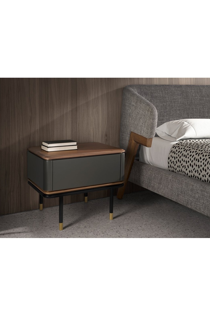 Table de chevet 1 tiroir - Imitation noyer et ardoise