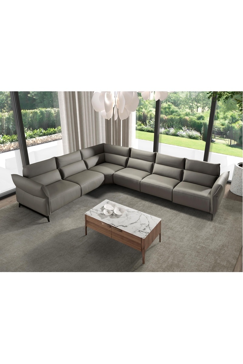 Canapé d’angle modulaire - Gris foncé - 5 places - En cuir