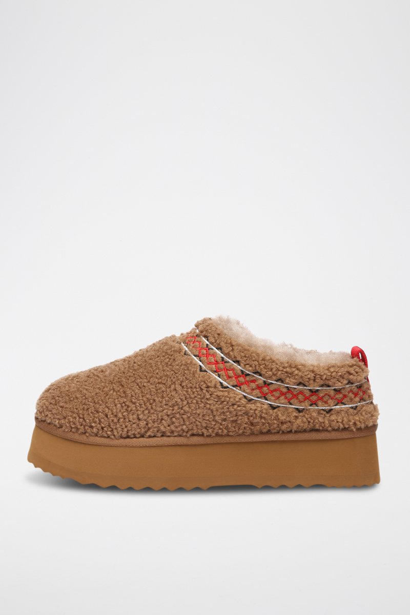 Sabots fourrés toucher doux et plateformes.