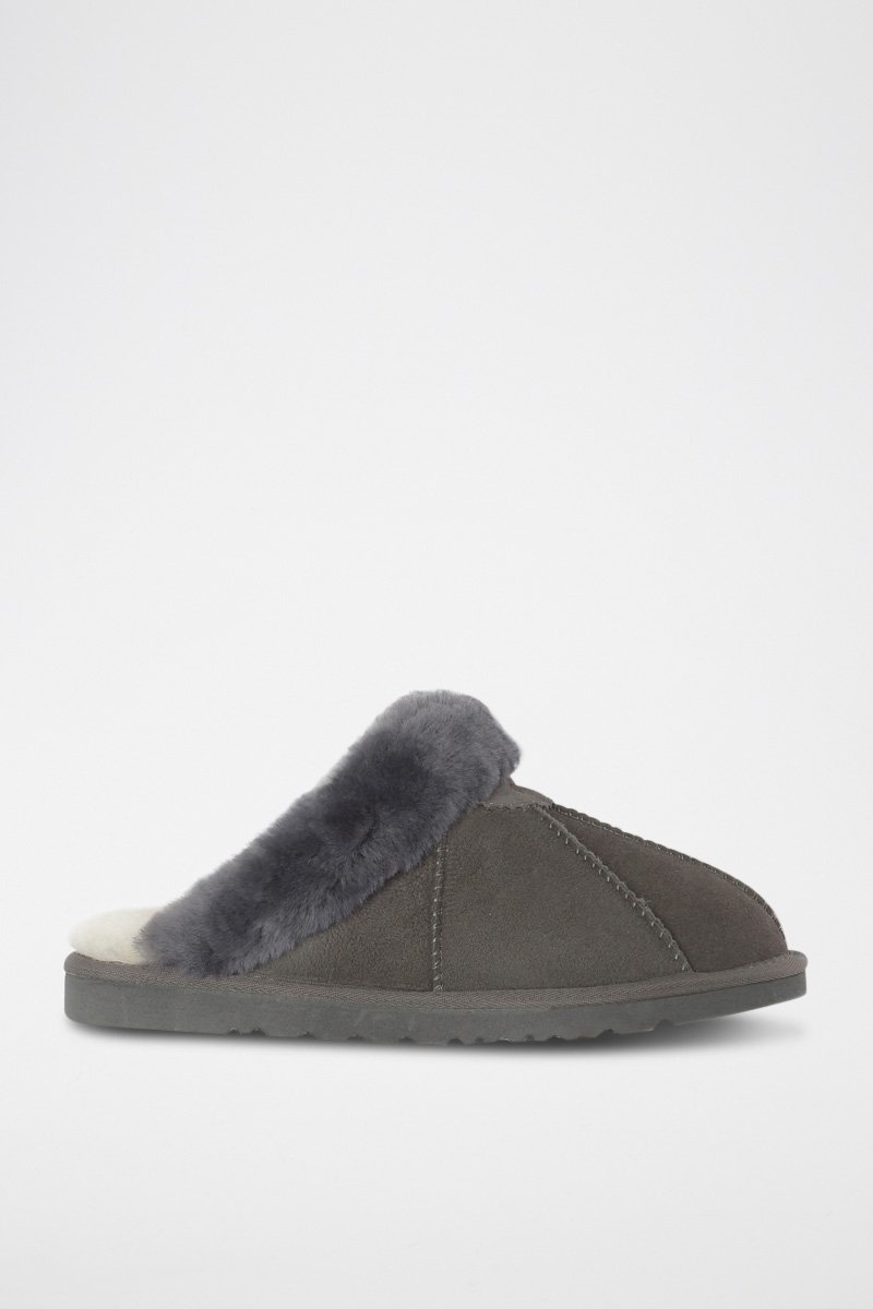 Pantoufles fourrées en cuir de mouton nubuck.